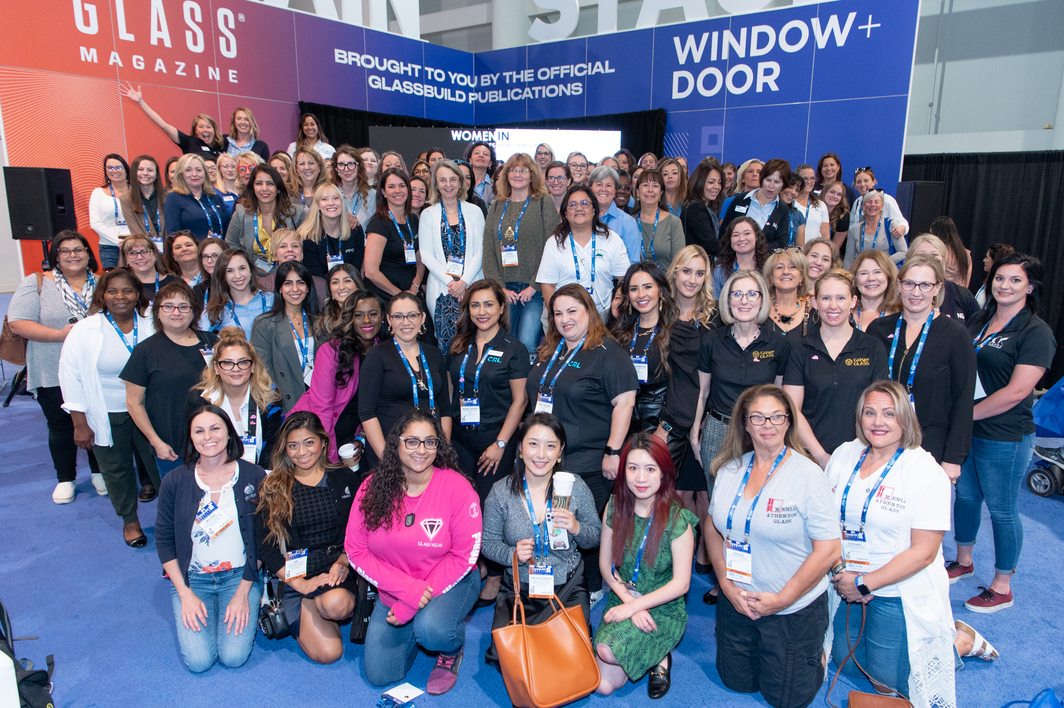 Above: The first gathering of women in glass & fenestration at GlassBuild America, 2022. The National Glass Association has been bringing this gathering to GlassBuild for the past three years, allowing women to network with each other and find support in the industry.